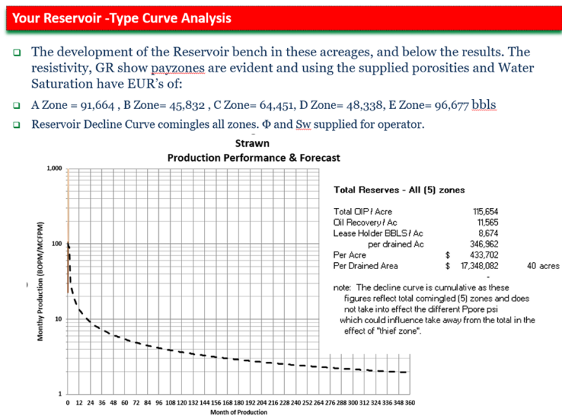 Discover our engineered reservoir analysis report. You will be asked to supply data/information, the rest is up to our team to deliver. A reserve analysis report from an opinion that includes 30 years of engineering work in oil and gas. Each report is specifically detailed to your reservoir. We can also make presentations on your behalf to funding groups wanting to know more.
